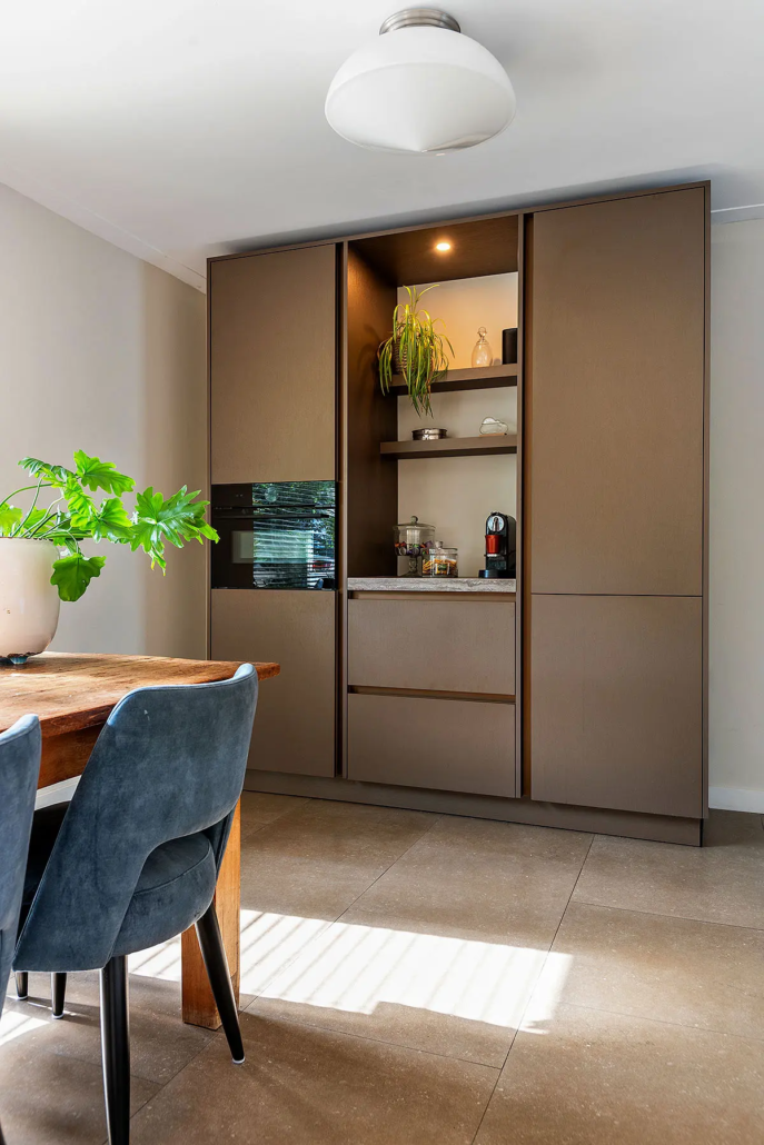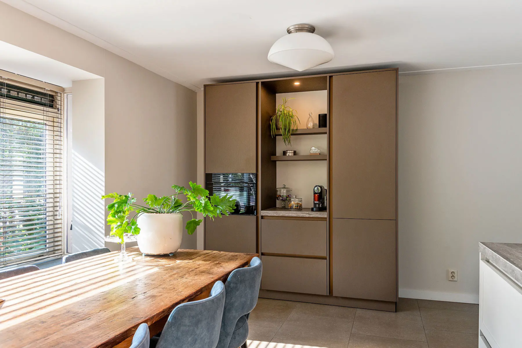 De indeling werd aangepast ten opzichte van de oude keuken. “We hebben nu een koffiehoek en de koelkast is naar de andere kant verplaatst.” Daarmee is er een functioneel en gezellig hoekje ontstaan, volgens Anja.