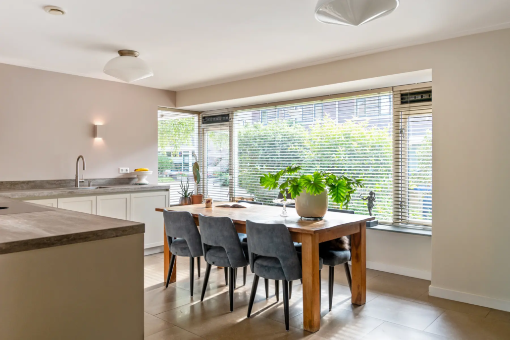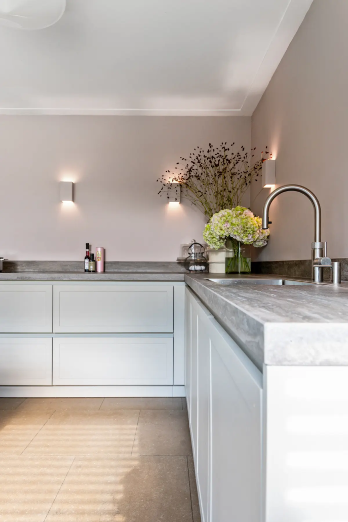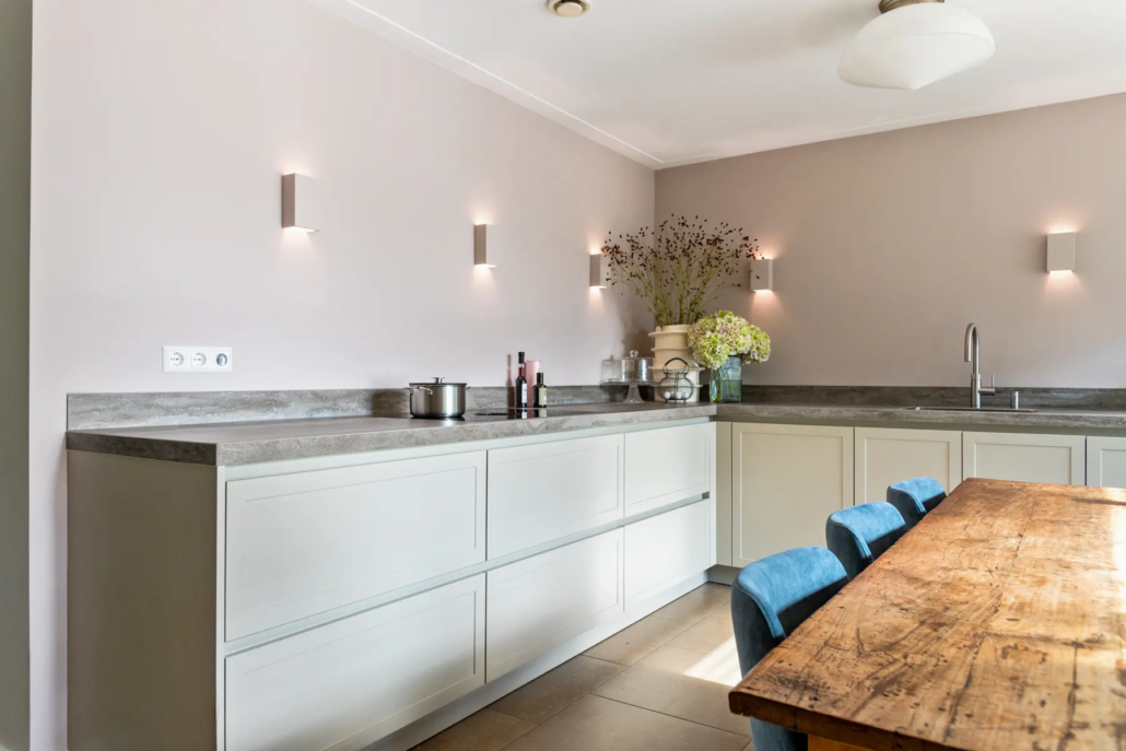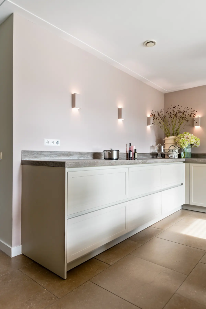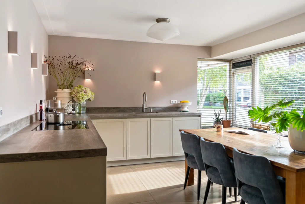 Wat direct opvalt in de keuken, is de open indeling, onder andere doordat er geen bovenkastjes zijn geplaatst. “Dat had ik al in mijn vorige keuken. Ik wilde dat toen al niet. Geen bovenkastjes geeft gewoon meer rust.”