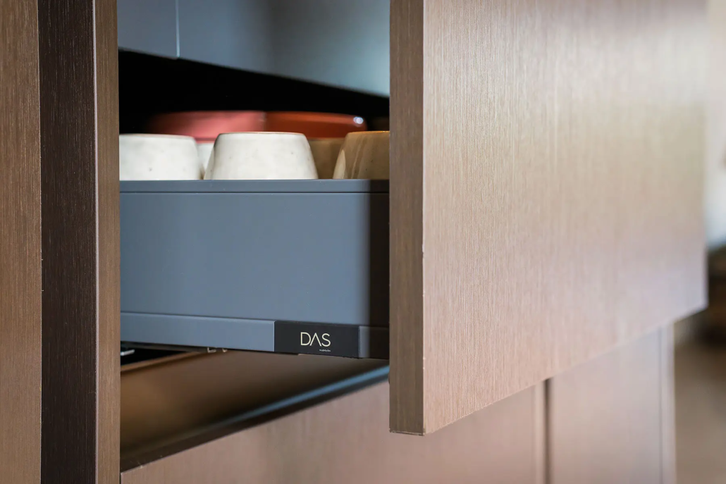 De keuken is verder uitgerust met ruime laden en praktische opbergruimte. “We hebben nu overal laders en dat is echt een uitkomst”.